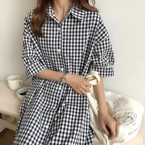 HOT ! chouyatou Women's Summer Casual Short Sleeve Cotton Gingham Dress Plaid Midi Long Shirt Dress