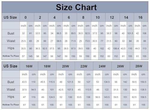 • Free Custom: In order to make you have the best wearing experience, we provide customization service for this style,If you want the dress to be customized, choose the size closest to your own size and email us the measurements of bust, waist, hips, hollow to floor/height. There is No Extra Charge for custom service.