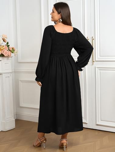 SCOMCHIC Women's Plus Size Maxi Dress Long Sleeve Pearl Square Neck Flowy A Line Wedding Guest Dresses 6