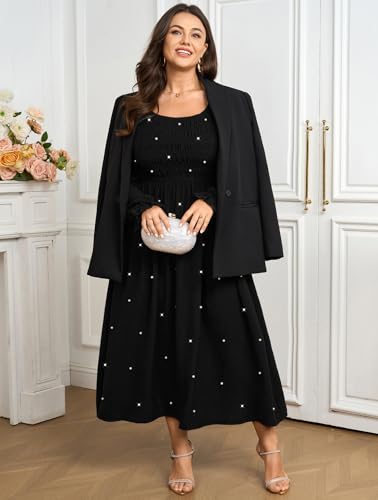 SCOMCHIC Women's Plus Size Maxi Dress Long Sleeve Pearl Square Neck Flowy A Line Wedding Guest Dresses 5