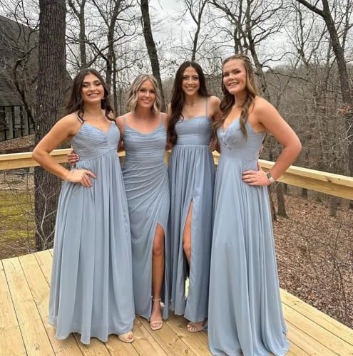 Noras dress Spaghetti Strap Bridesmaid Dresses for Wedding Long with Slit 2025 Chiffon A Line Formal Party Dress NO110 4