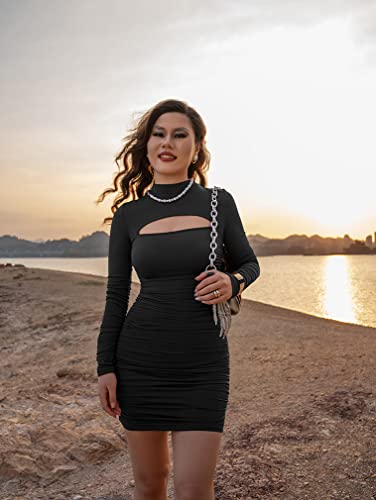 DAAWENXI Women's Sexy Long Sleeve Cut Out Bodycon Ruched Party Club Mini Dress 6