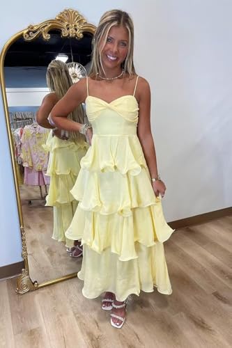 Maxianever Flowy Chiffon Tiered Bridesmaid Dress Spaghetti Straps Formal Evening Dresses 1