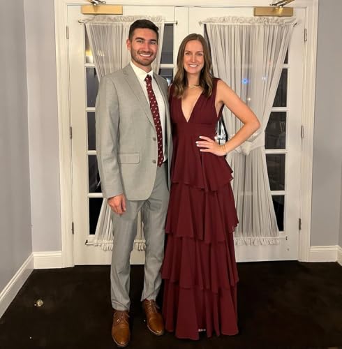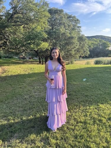 More information about BONOYUER Tiered Ruffles Bridesmaid Dresses Long for Wedding A Line V Neck Chiffon Formal Evening Dress