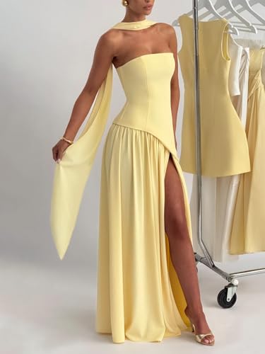 • Features: Long bridesmaid gown with scarf, wedding guest dress, strapless, A line corset evening party dress, sleeveless. Smooth fabrica、lace up back adds a touch of cuteness and sexy, make it more suitable as formal prom party dresses for women.