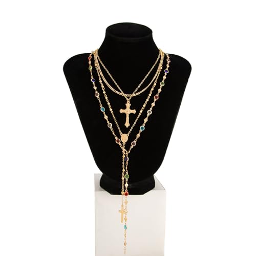 More information about Crystal Bead Necklace for Women Cross Pendant Clavicle Necklace Summer Long Tassel Chest Chain Jewelry Layered Rhinestone Neck Chain