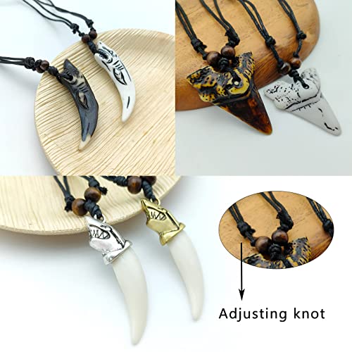 • Shark Tooth Necklace:This shark tooth necklace is made of high-quality natural resin and has primitive tribal style. It is very cool to wear this shark tooth necklace on the beach.
