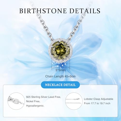 Presentski Sterling Silver Dainty Birthstone Pendant Necklace S925 White Gold Tiny Solitaire CZ Pendant Birthday Gift for Women 4