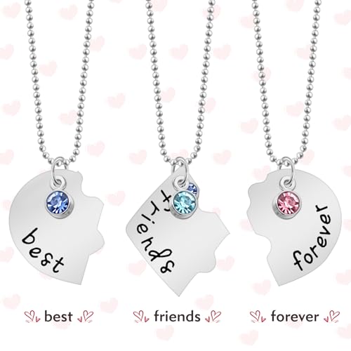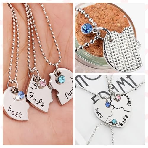 Friendship Necklace for 3, Heart Puzzle Matching BFF Best Friend Necklaces for 3, Best Friends Forever and Ever Necklace for Women Friendship Jewelry Gift 7