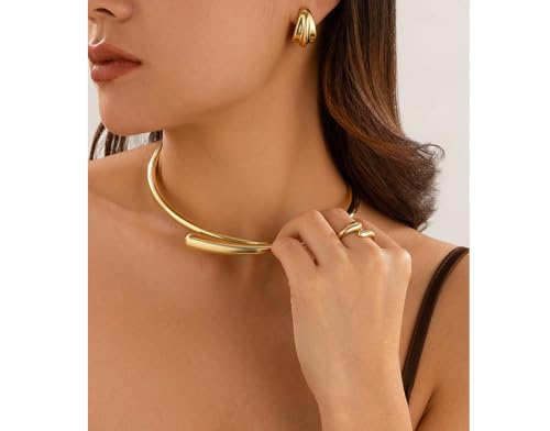 Chunky Plated Gold Necklace for Women Trendy Open Cuff Gold Collar Teardrop Thick Choker Gold Plating Statement Necklaces 6