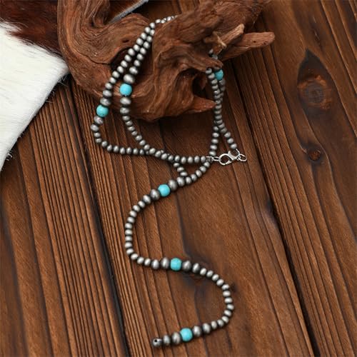 • Material:This necklace made from a type of beads that mimics the appearance of Navajo pearls. The turquoise beads offering a vibrant hue. The string used to hold the beads together is durable, ensuring the necklace can withstand regular wear.