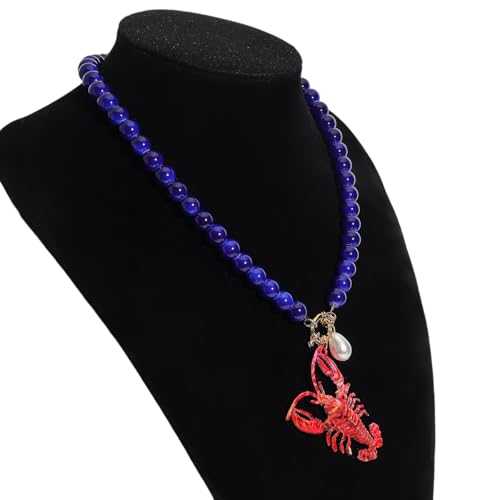 • Handcrafted Durability & Custom Fit: Meticulously hand-strung with glossy deep blue glass beads and anchored by a detailed lobster charm, this lobster necklace features a rust-resistant stainless steel chain with a 2.75-inch adjustable lobster clasp. The 19.68'' length ensures a perfect fit for teens and adults across all body types.