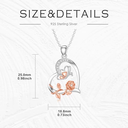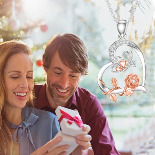 Diamond Butterfly Necklace for Women Sterling Silver Rose Butterfly Pendant Necklace Butterfly Jewelry for Women Wife 5