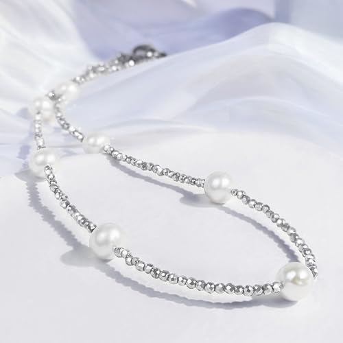 • Real Natural Pearl - This beautiful pearl choker necklace is created with real, natural, round freshwater pearls,not fake shells or faux pearls .Each one is handpicked with premium quality. Exquisite pearl beads are in different shape styles and the excellent high gloss adds elegance to you. Pearl beaded necklace is lead & nickel-free, soft for skin.