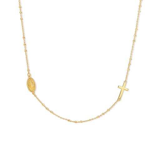 • Gold Rosary Cross Necklaces: this personalized necklace features dainty Rosary with sideways Cross & Virgin Mary.
