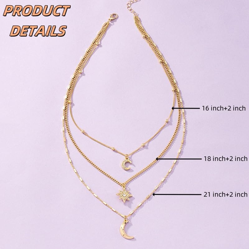 • LAYERED STYLE: Graduated chain lengths create an elegant cascading effect with celestial-themed pendants