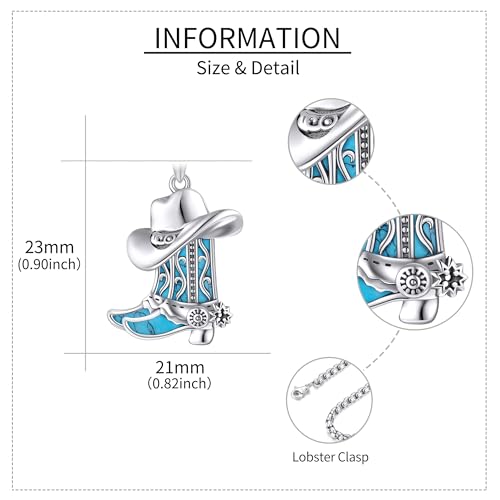 • 【SIZE】Cowboy boot pendant:0.82*0.92inch. Chain length:22+2 inch stainless steel chain. Packing list:1 x cowgirl necklace, 1 x polishing cloth and 1 x exquisite gift box.