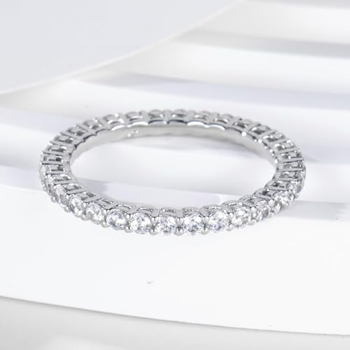 14K White Gold 2mm Eternity Rings for Women, Simulated Diamond Wedding Bands for Anniversary Size 5-9 6