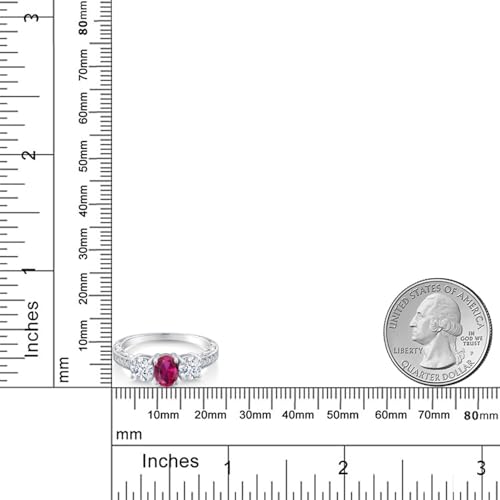 925 Sterling Silver Gemstone Birthstone 3-Stone Engagement Ring for Women | Oval 7X5MM and Round 5MM | Filigree and Milgrain Detail | Three Stone Wedding Anniversary Promise Ring | Size 5-9 1