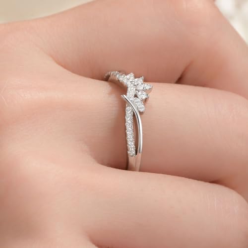 Wuziwen 925 Sterling Silver Wedding Bands for Women Curved Eternity Anniversary Rings for Her Cubic Zirconia 5