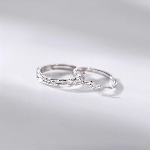 Branch Promise Matching Couple Rings for Him and Her Set Silver Plated Adjustable Love Engagement Finger Ring Statement Jewelrys 6