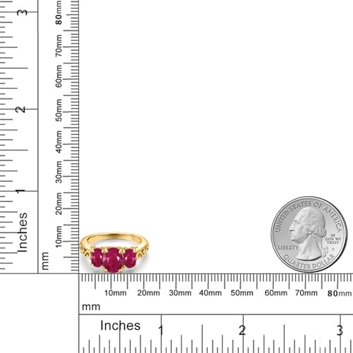 Gem Stone King 18K Yellow Gold Plated Silver Red Ruby Filigree Style 3 Stone Ring for Women (2.80 Cttw, Oval 8X6MM and 6X4MM, Available in Size 5, 6, 7, 8, 9) 5