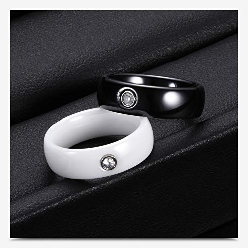• Simple 6mm width ceramic ring inlaid small cubic zirconia.