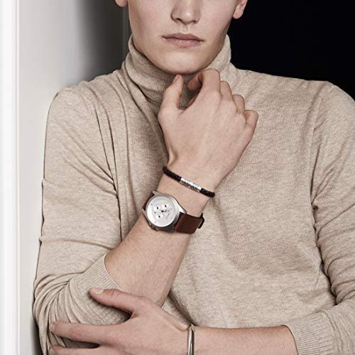 Carleen Destination 925 Sterling Silver Genuine Mens Leather Bracelet Braided Rope Energy Charm Clasp Birthday Gifts for Him, 9" Brown 5