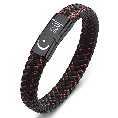 ZKXXJ Muslim Islam Allah Bracelet for Men Women,Stainless Steel Braided Leather Sun Moon Muslim Allah Engraved Cuff Bracelets Arabic Shahada Islamic Bracelet Jewelry with Magnetic Buckle 7