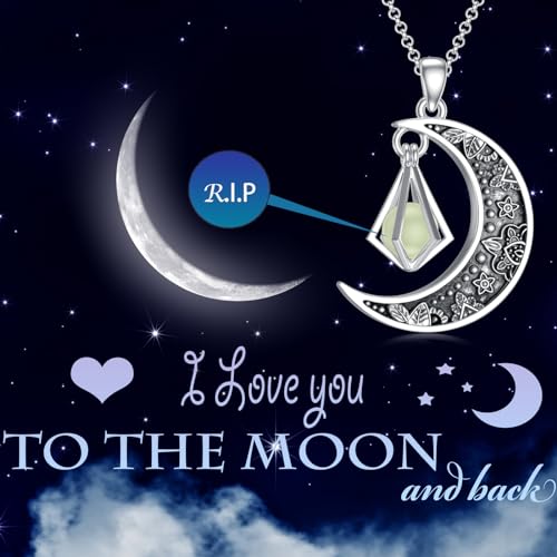 • [Design Concept]: The crescent moon is a symbol that represents the connection between transition and rebirth, carrying meaning of “Love you to the moon and back”, it has long been associated with the divine feminine energy. Wearing this luminous crescent moon necklace can symbolize the connection to the nurturing, compassionate, and intuitive aspects of the divine during the grieving process. An idea waterproof urn necklace for ashes with customized letters engraved memory the one you loved.