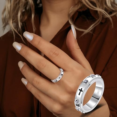 HOT ! LYTTMAB 6MM Sterling S925 Silver Rosary Spinner Ring For Men, Finger Decade Rosary Ring For Women, Catholic Anxiety Fidget Ring