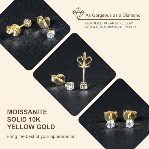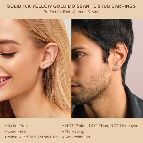 • Real 10K Gold: 10K white gold stud earrings for women men are made of solid 10K white gold with lab created round solitaire moissanite. It is NOT Plated, NOT Filled, NOT Overlayed; Professionally tested and STAMP G10K for gold purity authenticity, therefore both highly durable and hypoallergenic.