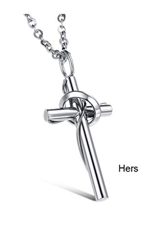 More information about Couple Titanium Stainless Steel Necklace Set "Lingering Love Cross" Love Valentine, Packed with a Gift Box
