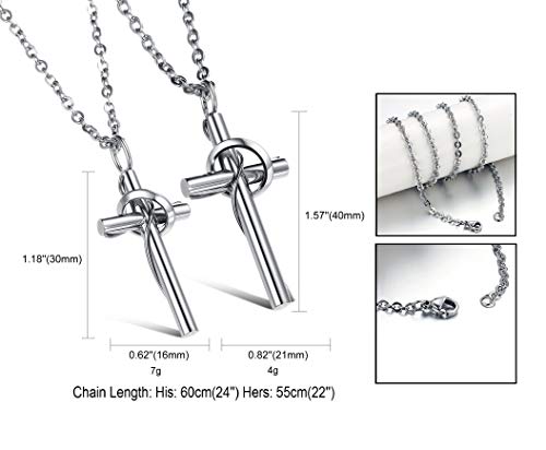 Couple Titanium Stainless Steel Necklace Set "Lingering Love Cross" Love Valentine, Packed with a Gift Box 7