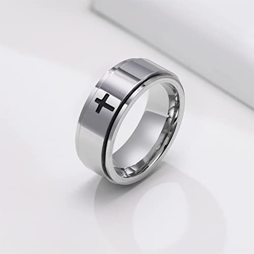 HOT ! Spinner Cross Rings for Men, Silver/Black Anxiety Fidget Rings Men, Mens Rings Stainless Steel for Stress Relieving, Promise Ring for Women Size 6-12