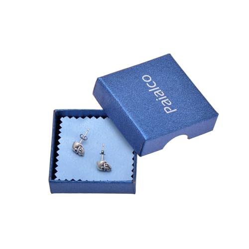 HOT ! Paialco Sterling Silver Antiqued Skull Stud Earrings for Men Women, Cool Mens Earrings Hypoallergenic