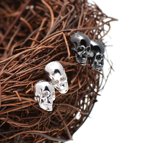 Paialco Sterling Silver Antiqued Skull Stud Earrings for Men Women, Cool Mens Earrings Hypoallergenic 5