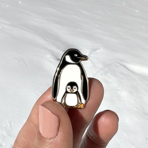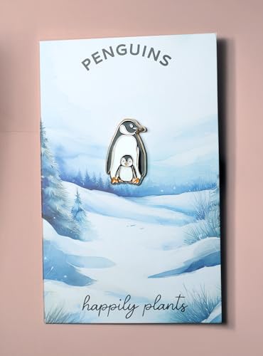 • 🐧 Adorable Penguin Design: Celebrate the bond between a mother and baby penguin with this cute penguin enamel pin, beautifully illustrated by Holly of Happily Plants.