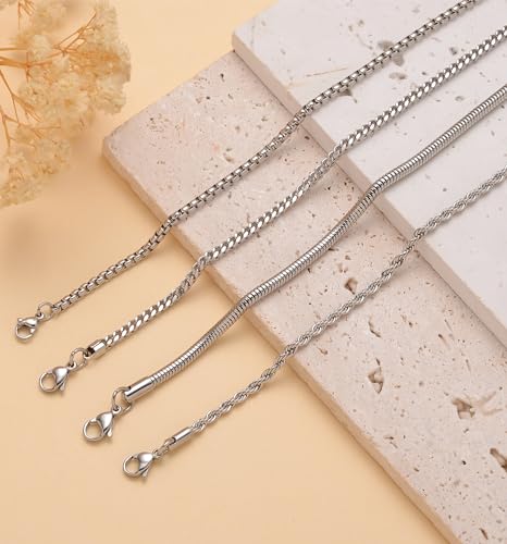 • BRACELETS SET FOR MEN: One Order include 8Pcs Stainless Steel Bracelets: Rope Chain, Figaro Chain, Paperclip Chain, Snake Chain and 2Pcs Cuban Link Chain Bracelets and etc, you can Wear them Everyday Individually or Stacked Together, Suit All Styles of Clothing