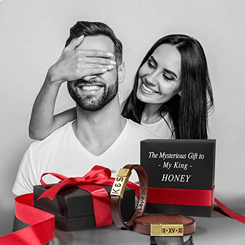 • Our personalized bracelets feature a genuine leather wristband in a stylish dark brown color, adding a touch of sophistication to your accessory collection.