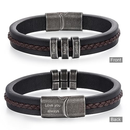 Personalized Bracelet for Men Custom Leather Braided Bangle Engraved Name Beads Fathers Day Jewelry Gifts for Dad Him Husband 1
