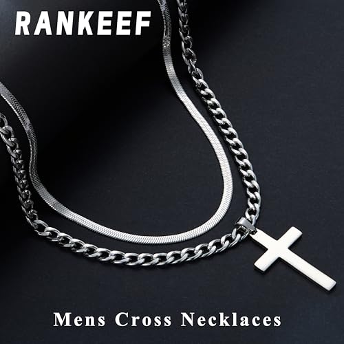 HOT ! RANKEEF 2Pcs Layered Cross Necklace for Men Stainless Steel Cross Necklace Christian Cross Pendant Hypoallergenic Snake Rope Cuban Link Cross Chain For Men 18-24 Inches