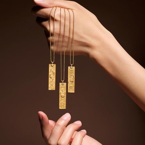 • PREMIUM MATERIALS & ADJUSTABLE SIZE: Hypoallergenic stainless steel vertical totem pole pendant and beaded chain, plated in 18K Gold Non Tarnish Color; Engraved Tarot Card with Embrossed Zodiac Sign -1.85(H) x 0.43(W) inch; 18+2 inch adjustable chain size