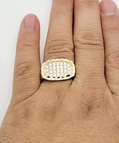 HOT ! 10K Yellow Gold Mens Ring Nugget Frame Ring Oval Shape