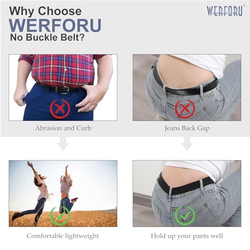 HOT ! WERFORU No Buckle Stretch Belt for Women and Men Elastic Waist Belt up to 72 Inches for Jeans Pants