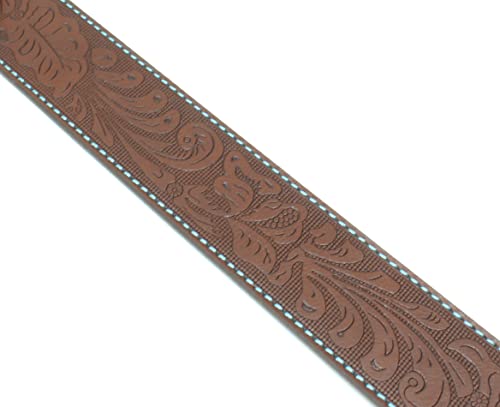 BC Belts Leather Belt Strap with Teal Stitching and Embossed Western Scrollwork 1.5" Wide with Snaps 5