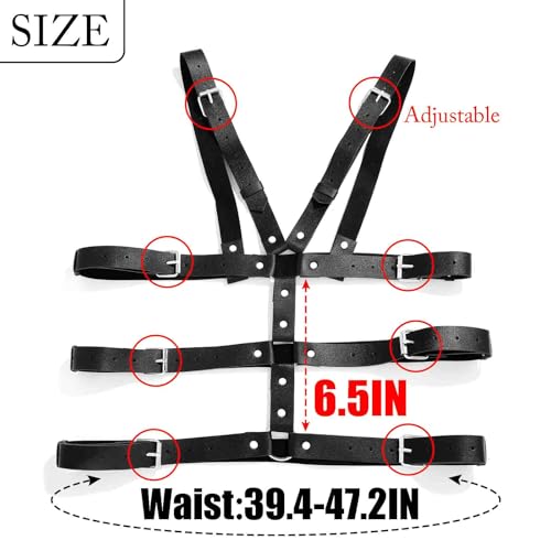 • Black harnessis one size,which details as picture shown, u can adjust the length of the belt according to your body shape, suitable for most men.