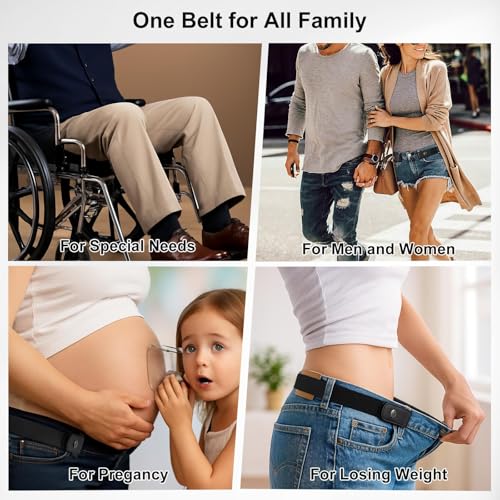 • Easy Use Belt - Just snap the button one time, extremely easy to use. A bonus circular buckle gives one more ways to match your jeans or dress.The flexible size belt up to 48” with a adjustable buckle, you can adjust a suitable size as your needs.The simple design with elastic band perfect for maternity,special needs men or children.