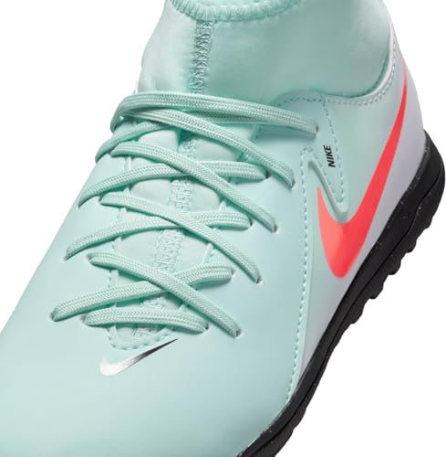 Nike Jr. Phantom Luna 2 Club Little/Big Kids' TF High-Top Soccer Shoes (FJ2607-300, Mint/Off Noir/Atomic Red) 6