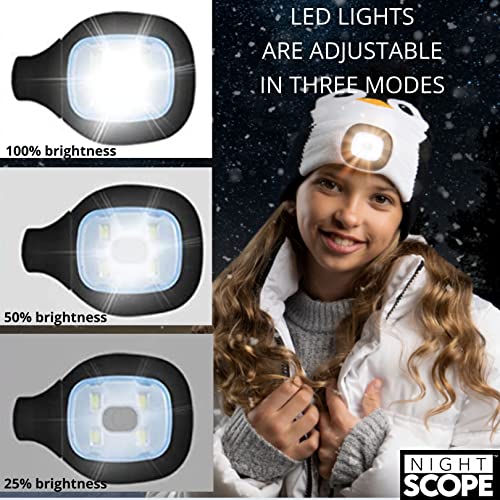 Kids LED Rechargeable Knit Beanie Head Lamp Pom Pom Hat for Boys and Girls 6